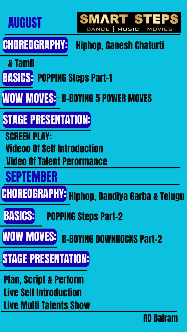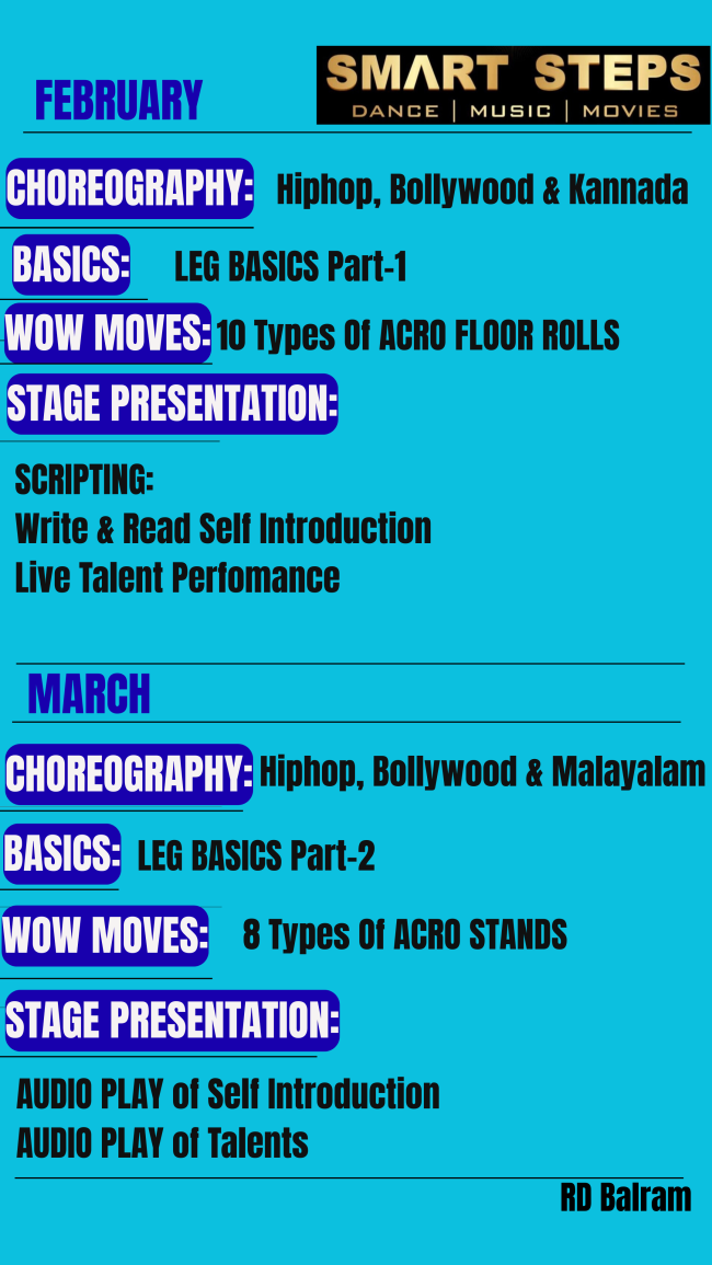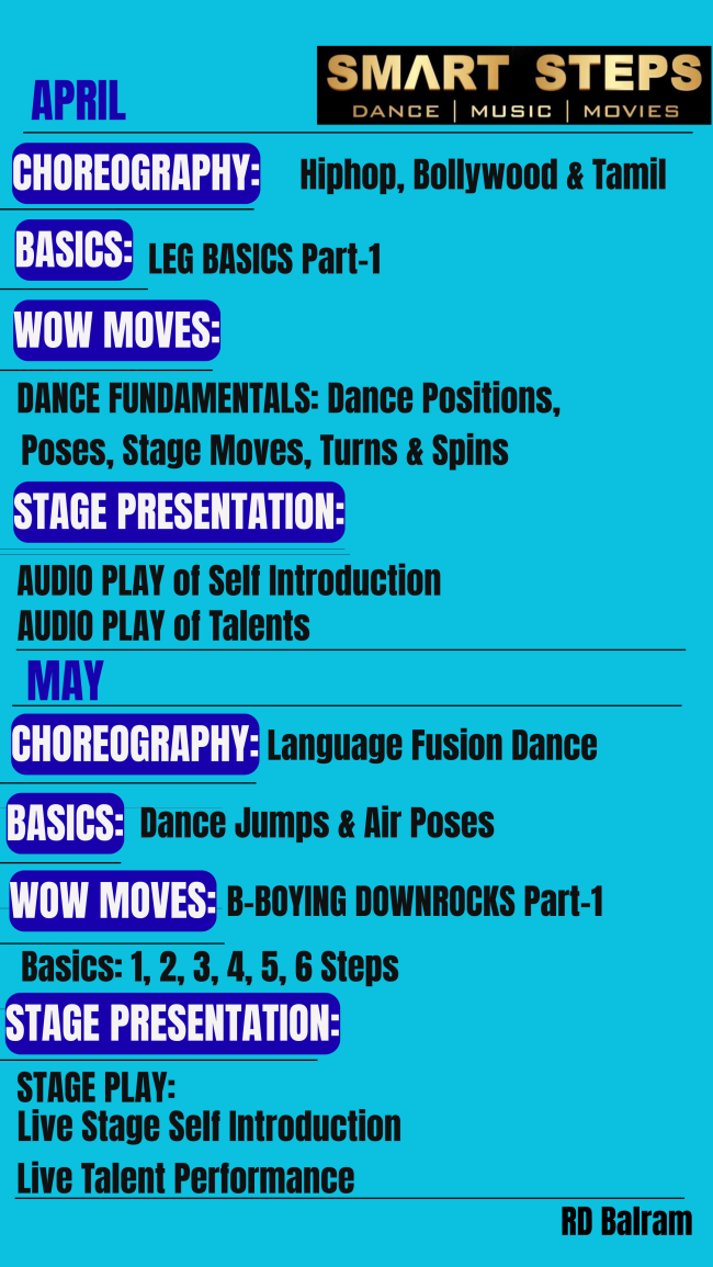 Hello Everyone This is RD Balram, Founder at SMART STEPS, With My 10 Years of Passionate Dance Teaching Experience, I am Continuously LEARNING, ANALYSING & DEVELOPING a Easy to UNDERSTAND, STEP BY STEP, Modern Freestyle Dance Learning & Performing Course Called
