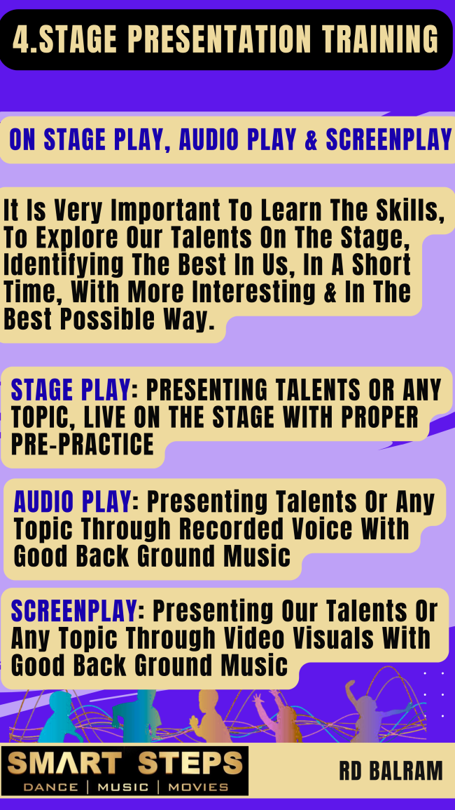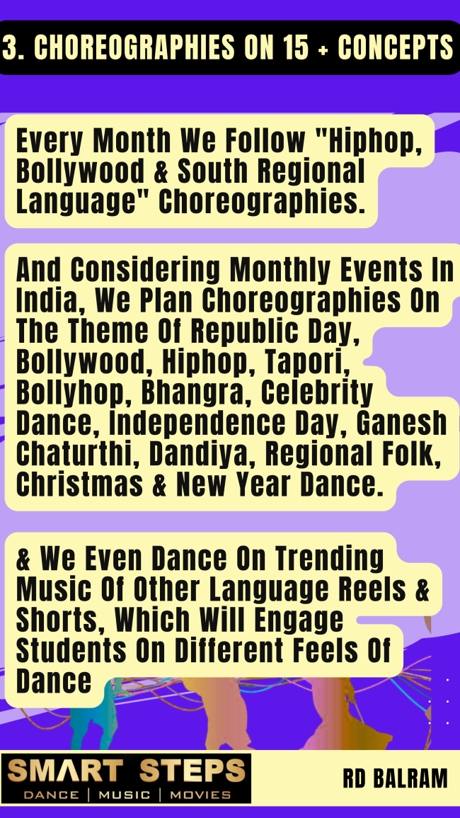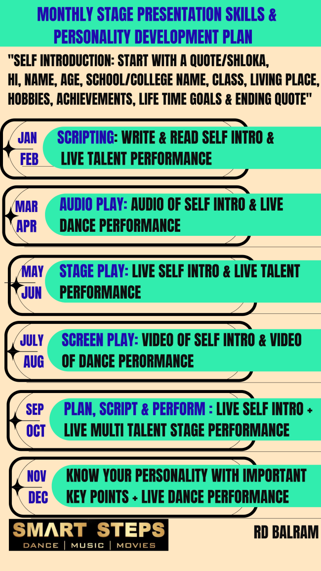 Studio Offers Structured Monthly Course With An Ambitious Curriculum With The Clear Objective Of Equipping Students To Master Over 400+ Dance Basics, Execute 100+ Wow Moves, Perform 15+ Choreography Concepts, And Acquire Audioplay, Stageplay & Screenplay Presentation Skills Alongside Personality Development Key Points